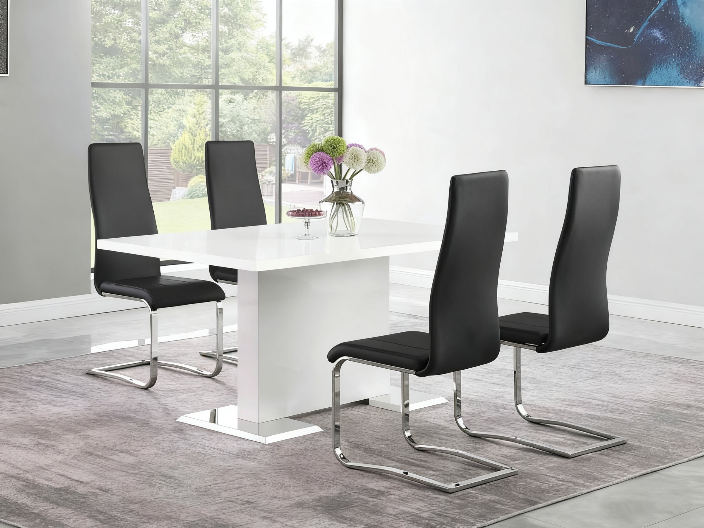 Brooklyn Rectangular Dining Table White High Gloss and Chrome