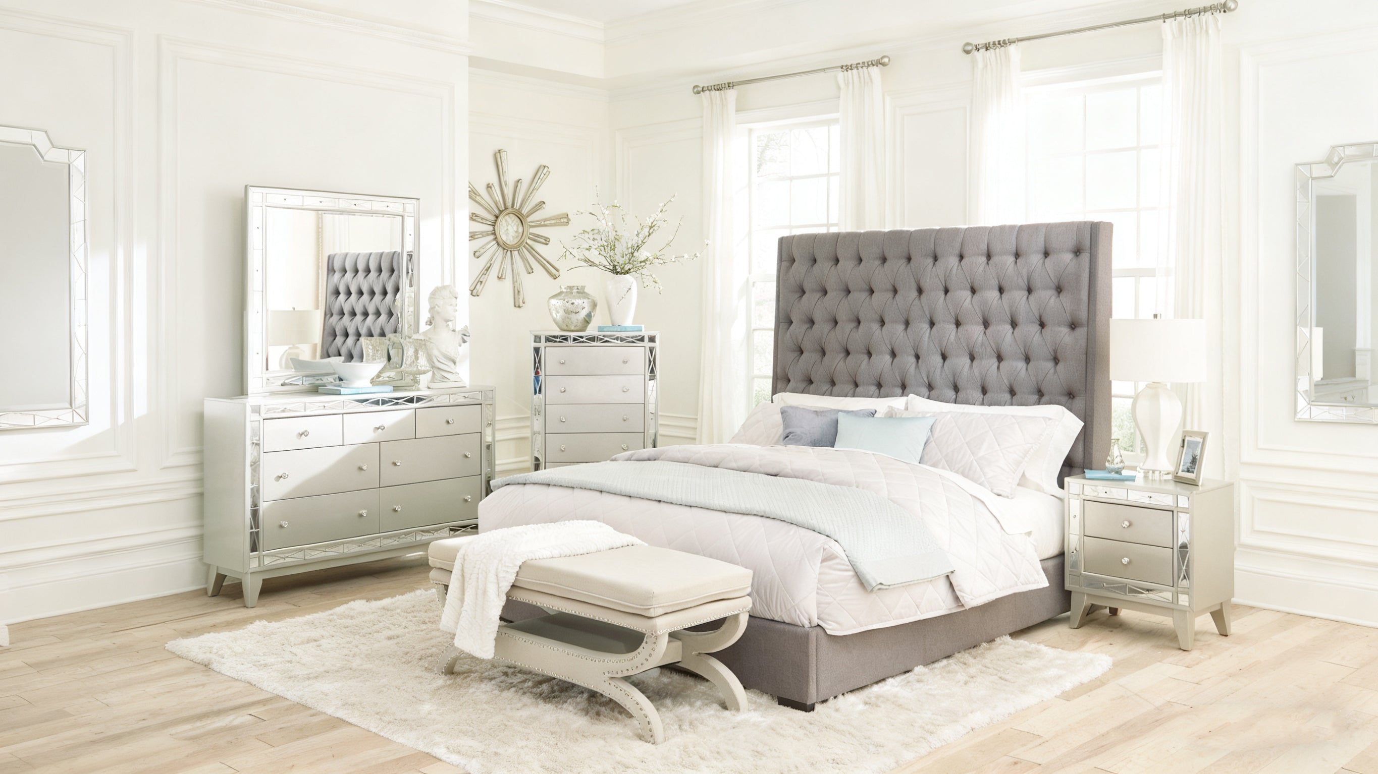 Camille Upholstered Bed - Grey